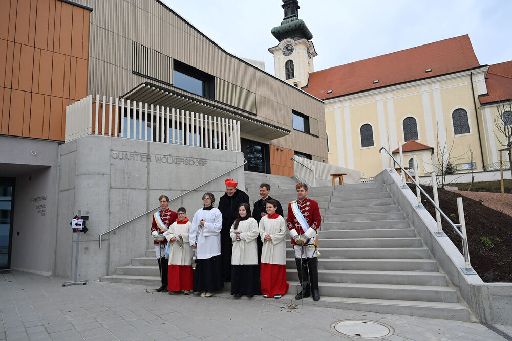 Am Sonntag, dem 12. Jänner 2025, feierte Kardinal Christoph Schönborn eine Festmesse und segnete anschließend das neue „Quartier Wolkersdorf“. Nach langen Verhandlungen entstand eine Kooperation zwischen der Pfarre und der Stadtgemeinde Wolkersdorf. Der Zu- und Umbau des Pfarrzentrums begann im Herbst 2023, und die neue Einrichtung wird nun von beiden genutzt. Wir waren mit der Kamera dabei.
