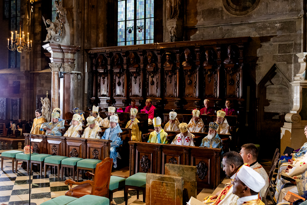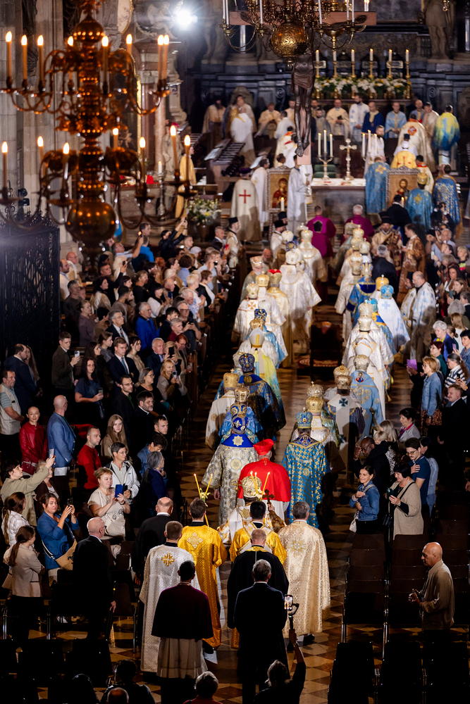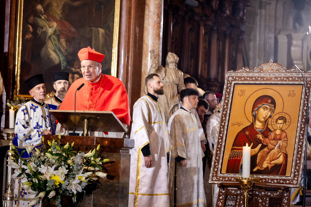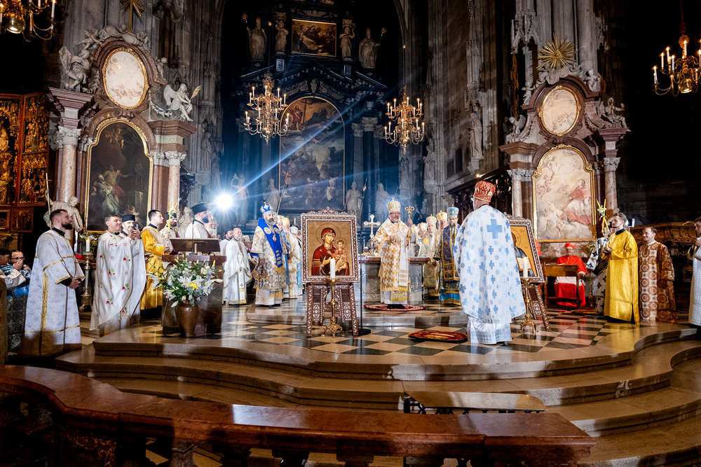 Gottesdienst im byzantinischen Ritus war Mittwochabend liturgischer Höhepunkt der Wiener Vollversammlung der Bischöfe der katholischen Ostkirchen Europas - Kardinal Schönborn in Predigt: "In der Liturgie sind wir ganz besonders mit dem Himmel verbunden", gerade in Zeiten des Krieges und der Not. Wir waren mit der Kamera dabei.