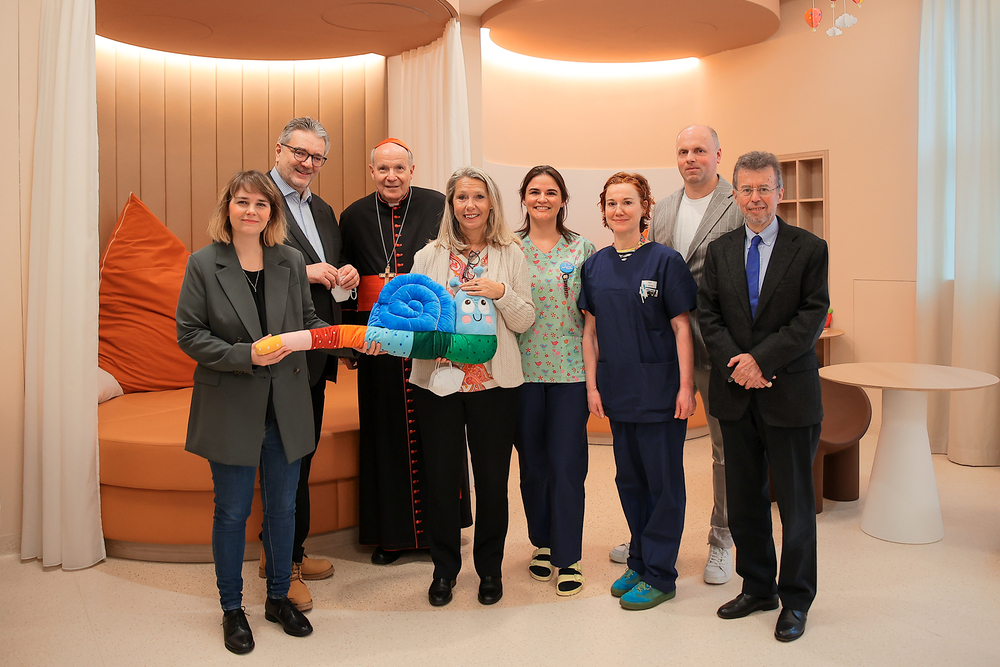 Kardinal Schönborn segnet neues Kinderpflegedomizil "Fridolina" im Haus der Barmherzigkeit. Dieses bietet ein stationäres Pflegeangebot für chronisch kranke Kinder.