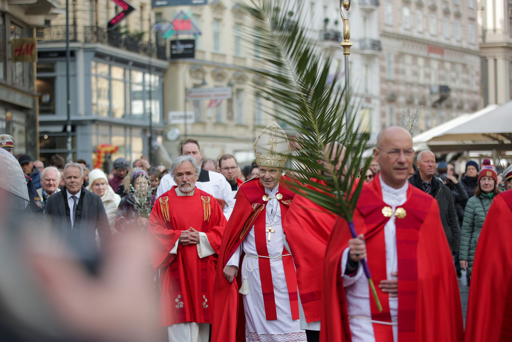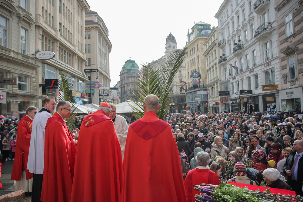 Traditionell werden am Palmsonntag, eine Woche vor Ostern, in der Wiener Innenstadt die Palmkätzchen von Kardinal Christoph Schönborn gesegnet. Die Palme ist ein Symbol des Sieges und steht im Christentum für das ewige Leben. Wir waren mit der Kamera dabei.